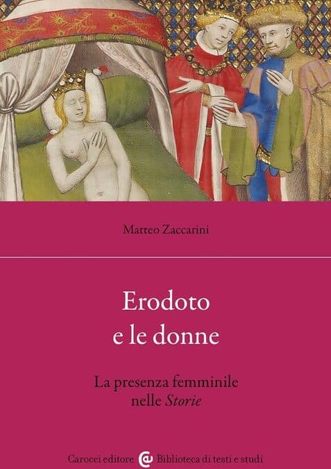 MATTEO ZACCARINI, ERODOTO E LE DONNE (CAROCCI, PP. 196, EURO 22) Le donne raccontate da Erodoto di Alicarnasso, ‘il padre della Storia’. Una è la regina di Lidia che, costretta dal marito a mostrarsi nuda davanti agli altri, architetta una vendetta esemplare. Matteo Zaccarini, professore associato di Storia greca all’Alma Mater Studiorum – Università di Bologna, conduce il lettore alla scoperta della narrazione del femminile nel mondo antico. Tra le donne di cui parla Erodoto ci sono lady professioniste del sesso e fornaie. Erodoto riporta l’episodio di Creso che dedica una gigantesca statua dorata a una propria fornaia, un onore straordinario “che, per fare un paragone, era analogo a quello concesso da Dario alla propria moglie prediletta”, spiega Zaccarini. Quanto alle etere, ampio spazio è riservato a Rodopi, vissuta nel VI secolo nell’Egitto di Amasi. Era una schiava trace avvenente e sfruttando la propria bellezza visse a lungo in Egitto lavorando autonomamente come etera, divenne tanto ricca da impiegare un decimo dei proventi per erigere a Delfi un monumento dedicato come proprio memoriale. Altro personaggio di rilievo nelle Storie è Gorgo, figlia di Cleomene. Gorgo, regina di Sparta, è nota per la sua intelligenza e il suo eccezionale acume, fin dalla tenera età in grado di fiutare gli inganni dei nemici.