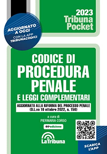 Quest’Opera, accompagnata da un apparato essenziale di annotazioni, si conferma ? per il formato pratico e maneggevole ? quale fondamentale strumento pratico per lo studio e il lavoro degli operatori del settore. La selezione delle norme complementari comprende materie fra le quali: Depenalizzazione, Sicurezza pubblica, Stupefacenti; Usura. Questa edizione è aggiornata al decreto legislativo 10 ottobre 2022, n.150, di attuazione della legge delega di riforma del processo penale (c.d. riforma Cartabia). La riforma interviene sull?intero processo penale: dalle indagini preliminari, al dibattimento, ai riti alternativi, al processo in absentia, ai giudizi di impugnazione, fino all?esecuzione penale. La Tribuna offre la possibilità di ricevere ogni giorno tutti gli aggiornamenti normativi che riguardano questo Codice. Infatti, è attiva un’apposita App che permette di essere costantemente aggiornati.